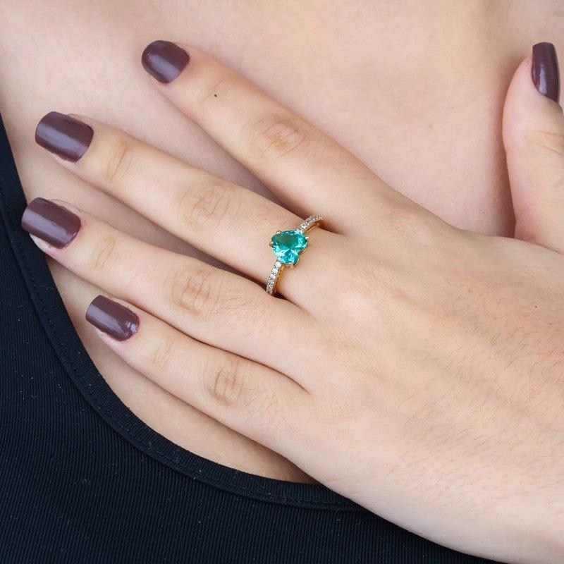 Anel Coração Cristina zirconia turmalina e brancas folheado a ouro