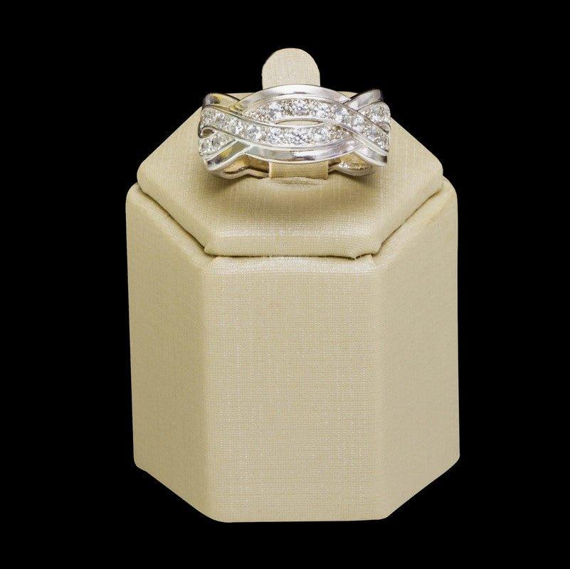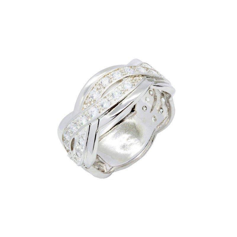 Anel Largo Donna com zirconias brancas folheado a rodio