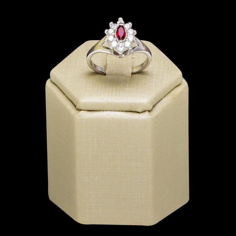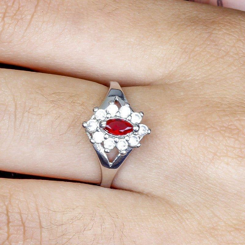 Anel Thalia com zirconias brancas e rubi folheado a rodio