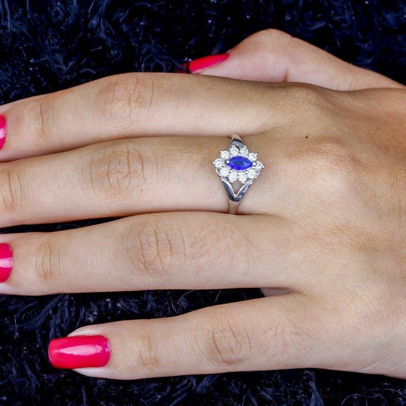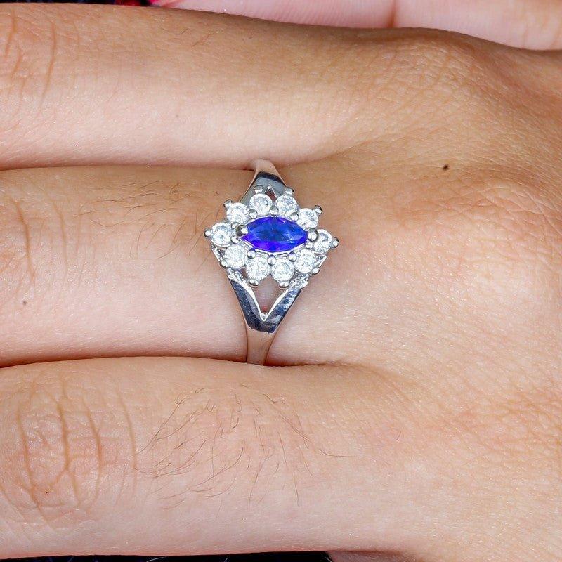 Anel Thalia com zirconias safira e brancas folheado a rodio