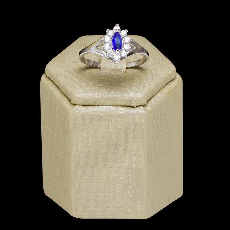 Anel Thalia zirconias brancas e safira folheado a rodio.