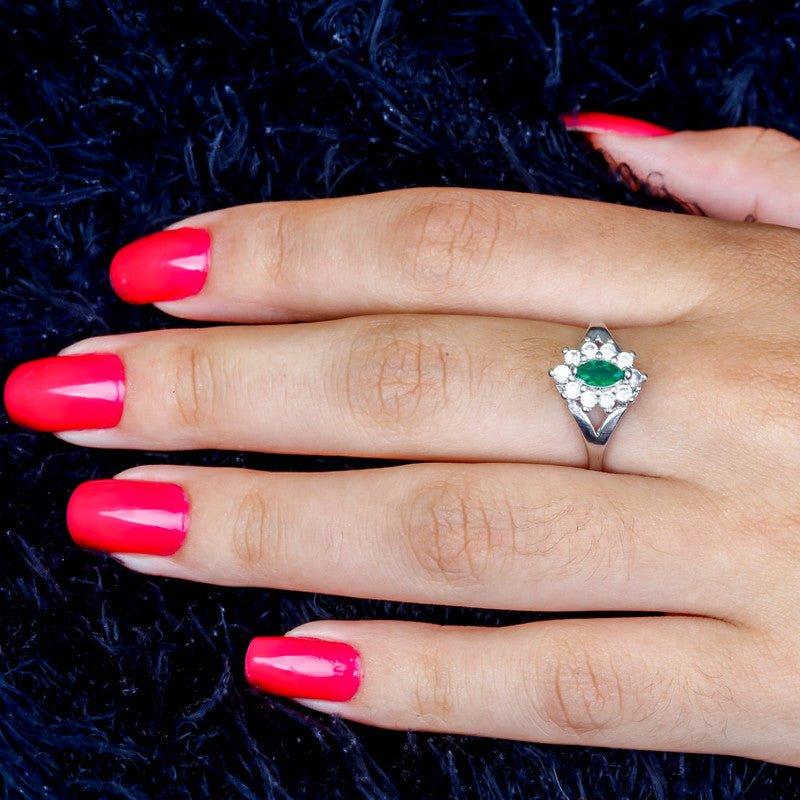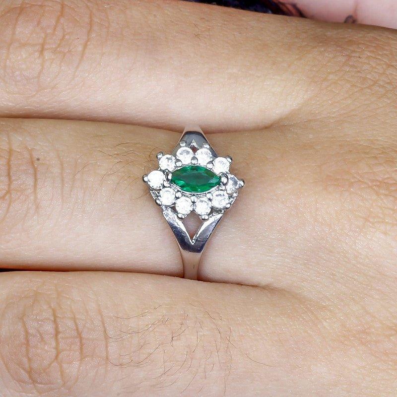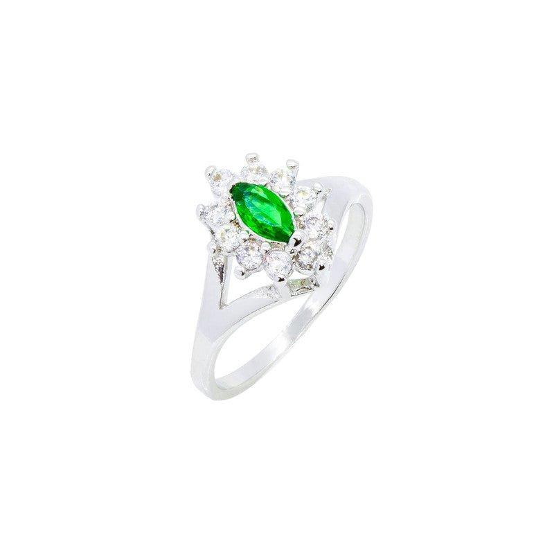 Anel Thalia zirconias brancas e esmeralda folheado a rodio