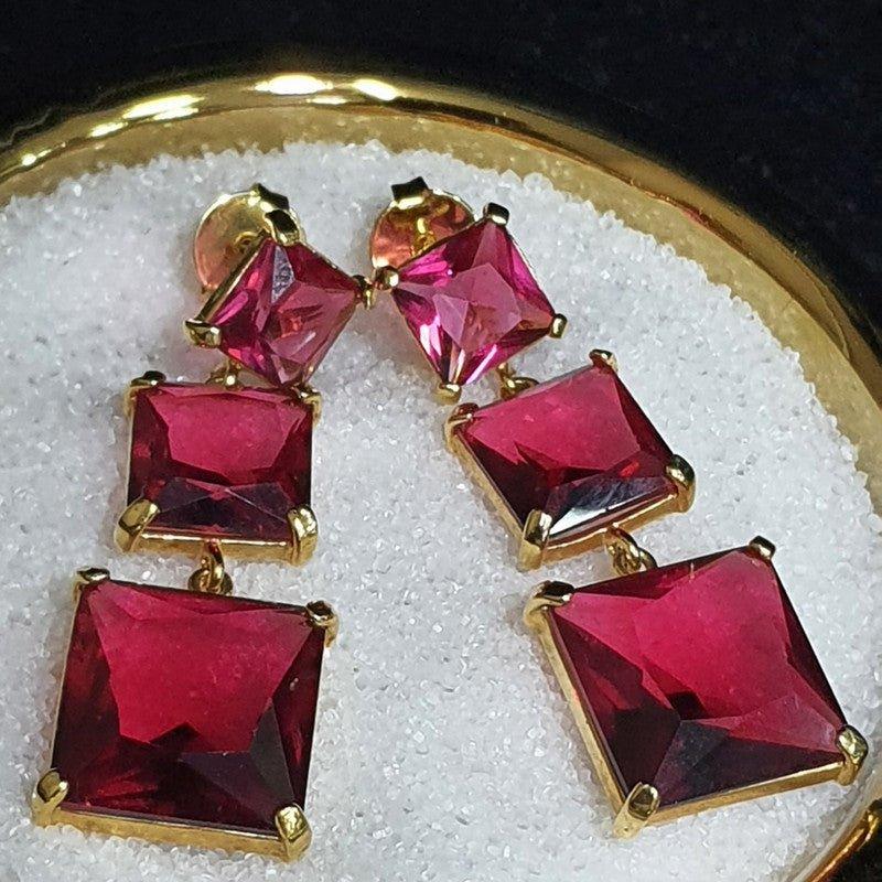 Brinco Beth folheado a ouro 18k com pedras de zirconias marsala.