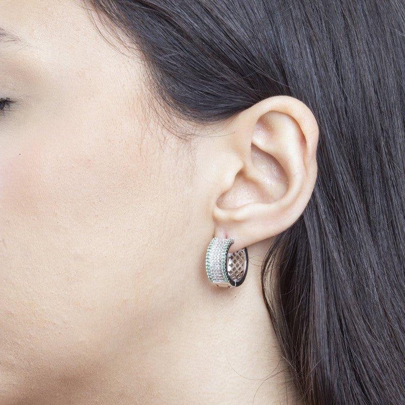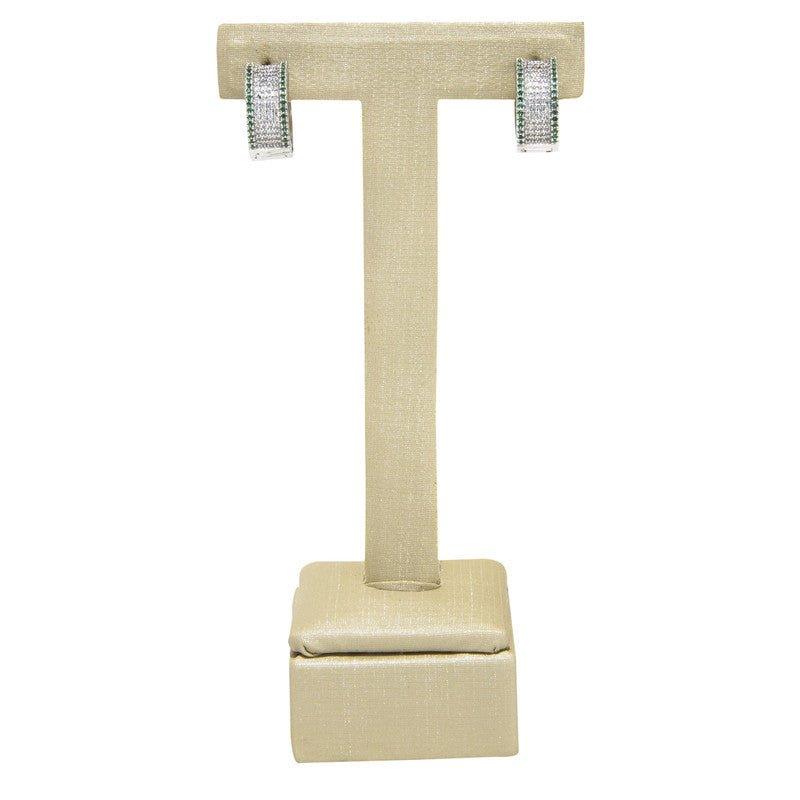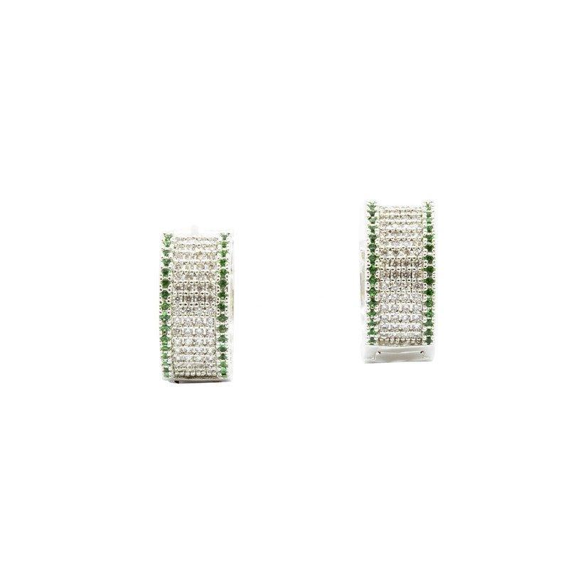 Brinco Emanuely argola com microzirconias zirconias brancas e esmeraldas folheado a rodio.