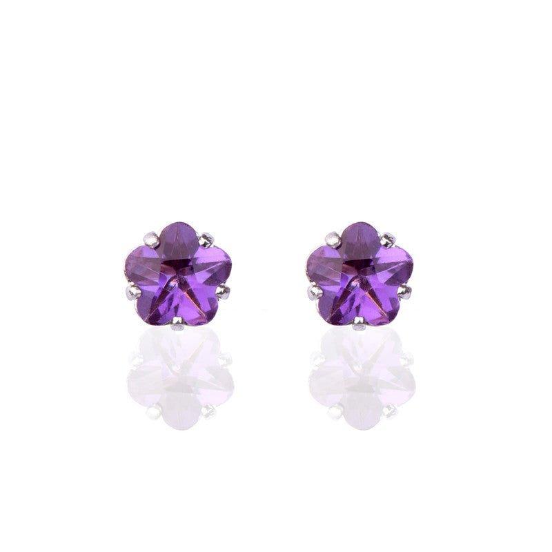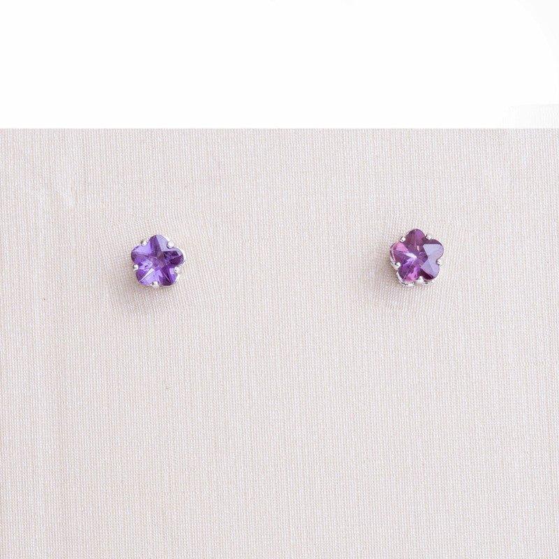 Brinco Flora flor zirconias ametista folheado a rodio.