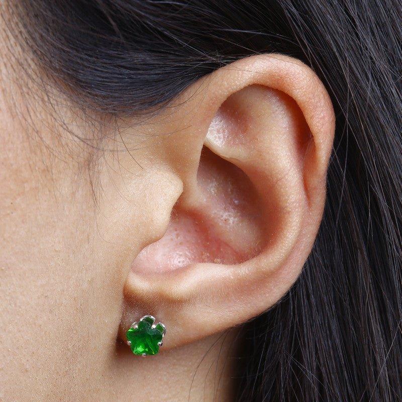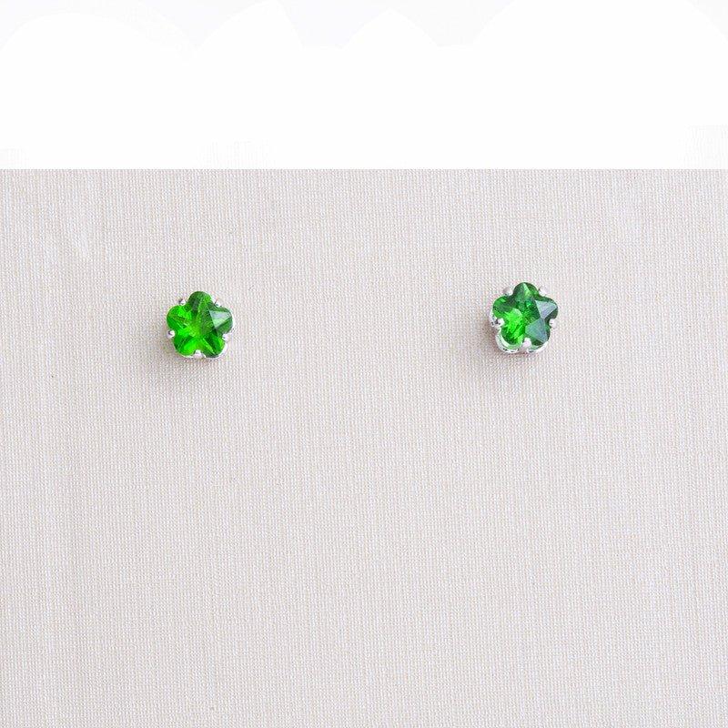 Brinco Flora flor zirconia esmeralda folheado a rodio