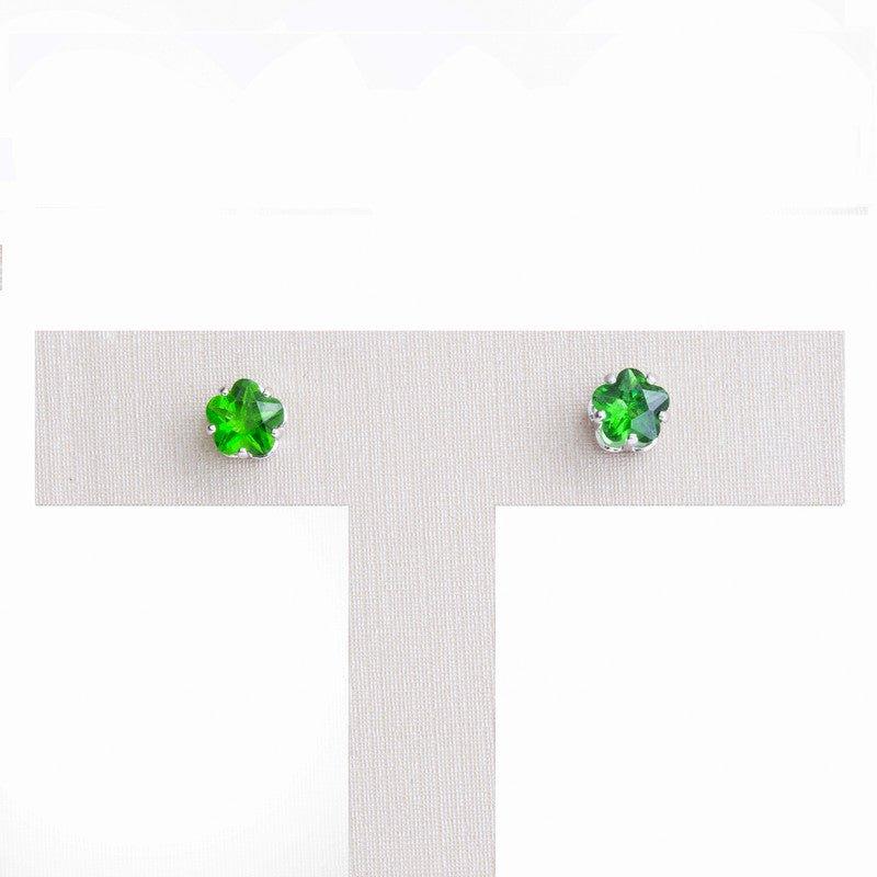 Brinco Flora flor zirconia esmeralda folheado a rodio.