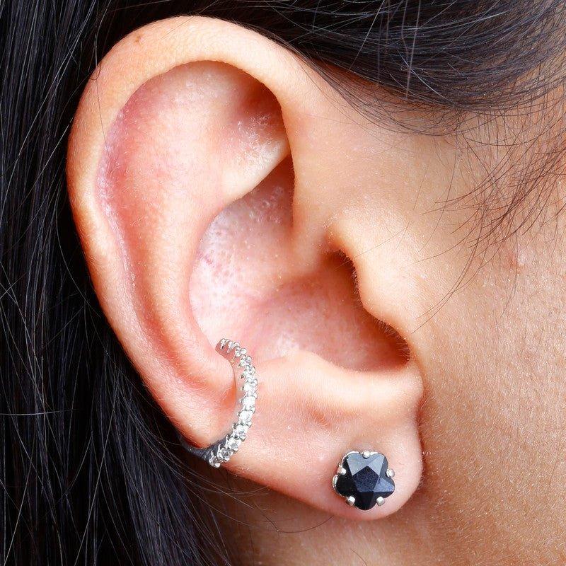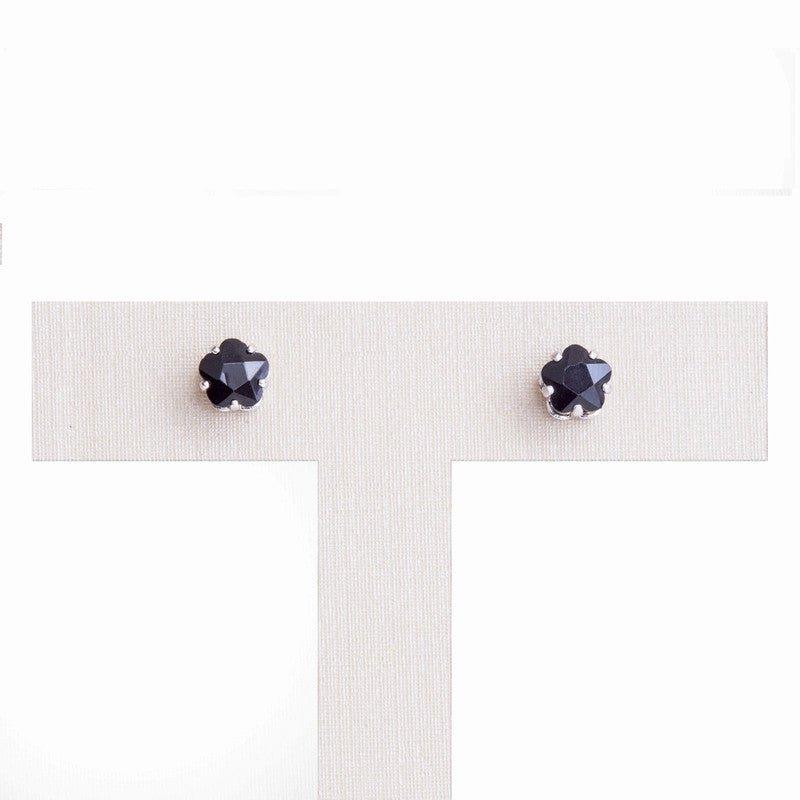 Brinco Flora flor zirconia onix folheado a rodio.