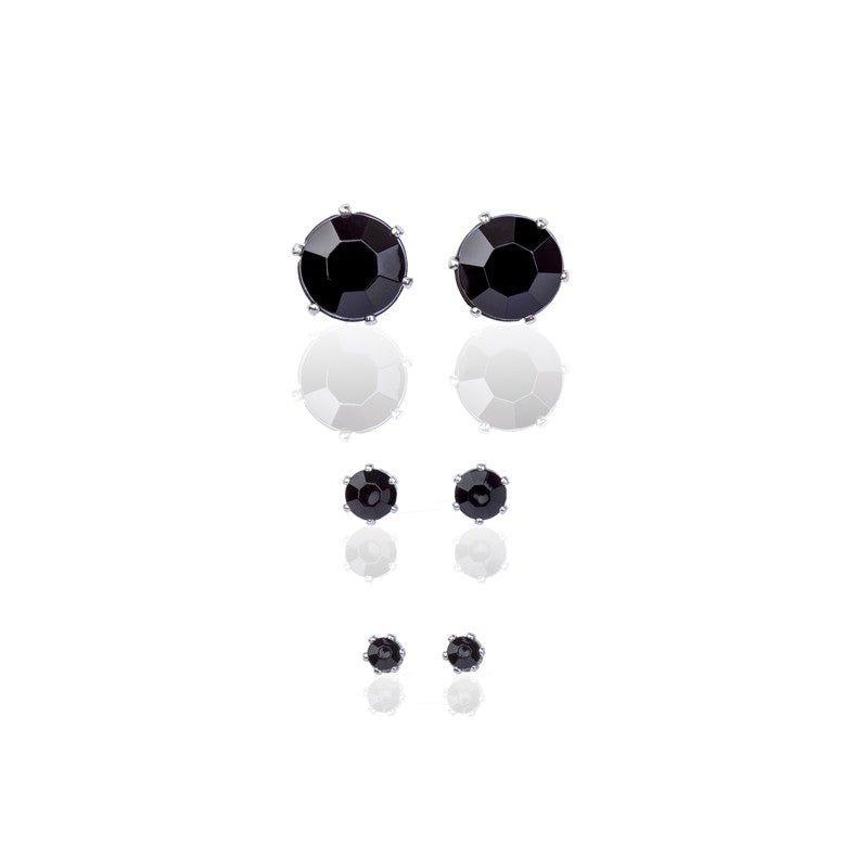 Kit Lonely Two trio de brincos com zirconias onix folheado a rodio.