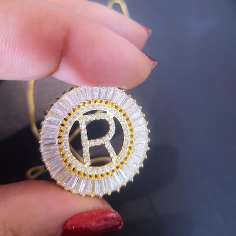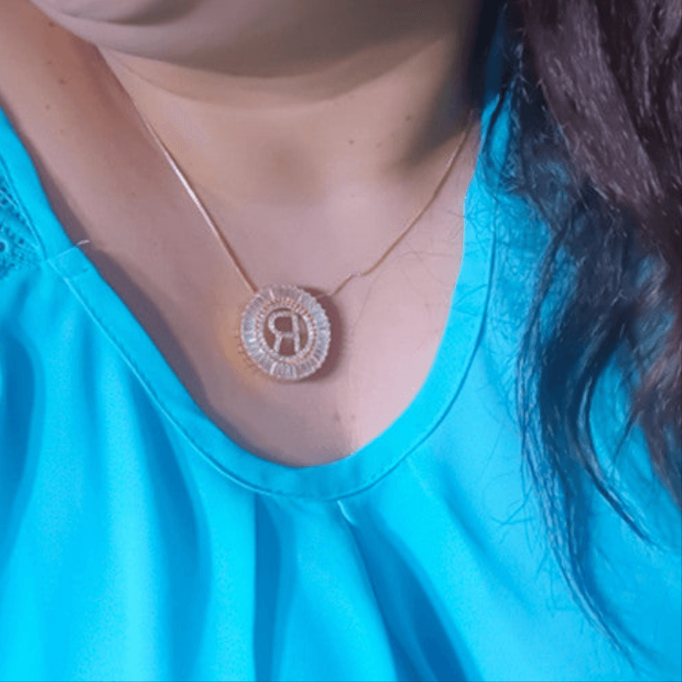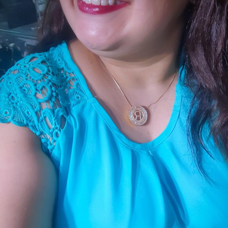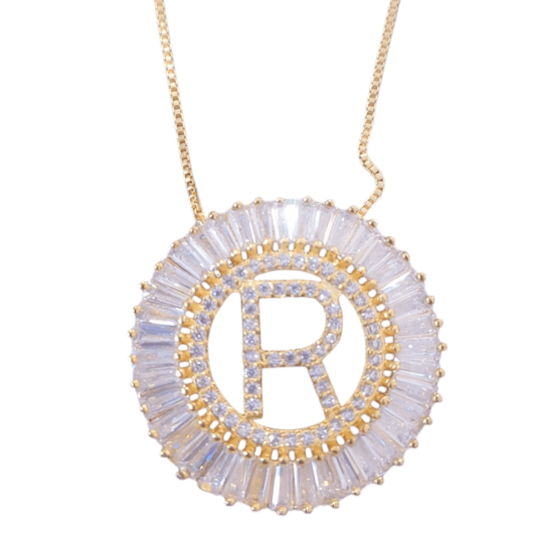 Pingente mandala de letra R folheado a ouro