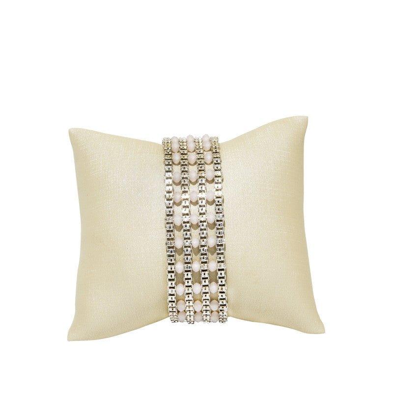 Pulseira Cassie com pedras quartzo rosa folheada a rodio.