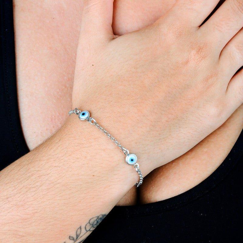 Pulseira Otavia com olho grego folheado a rodio.