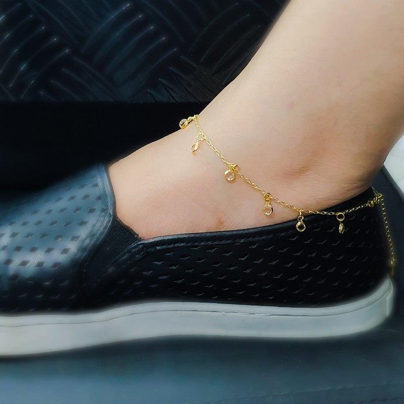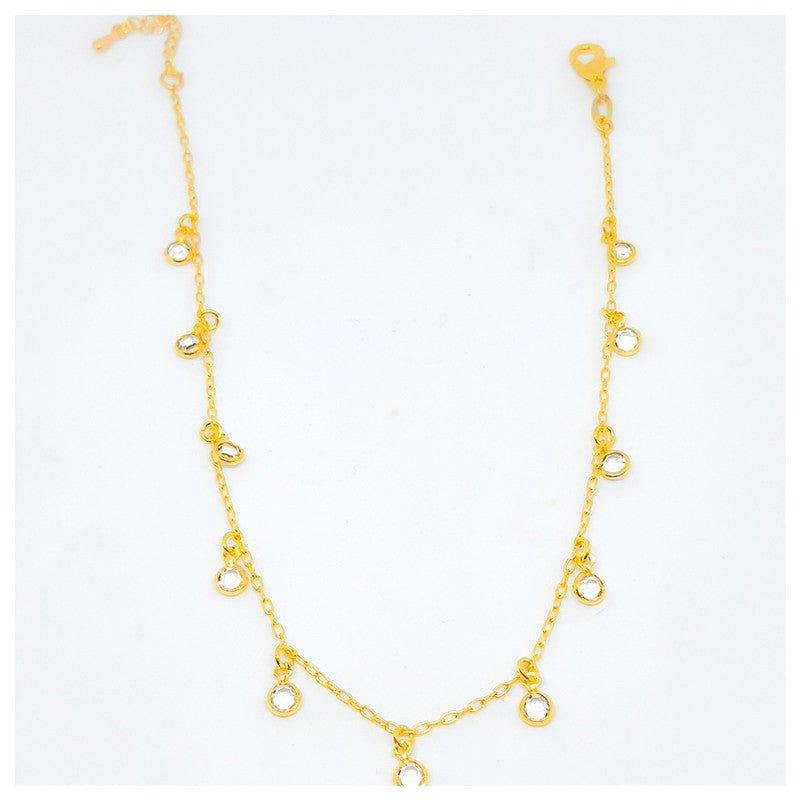 Tornozeleira Tifany com zirconias brancas folheado a ouro